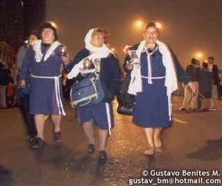 EL HÁBITO A la difusión del culto contribuyó el esfuerzo de Antonio Lucía del Espíritu Santo, sierva de Dios. Ella vestía de morado, con un cordón blanco. Fundó el Beatario de Las Nazarenas y la congregación vistió como ella. Se dedicaron, entre otras labores, a cuidar la imagen de Pachacamilla. Así, poco a poco, se fue asociando el traje morado al Señor de los Milagros. Desde entonces hasta hoy, los fieles hacen peticiones al Cristo Morado y le prometen, a cambio, vestir de morado por un año o hasta por toda la vida el hábito. EL TURRÓN Según cuenta la tradición que su inventora fue una morena, llamada Josefa Marmanillo, una esclava del valle de Cañete. Doña "Pepa" fue liberado porque adolecía de parálisis y prometió al Señor de los Milagros seguir la procesión si la aliviaba de su mal. Durante el primer día de la procesión recuperó milagrosamente el uso de sus brazos y manos. Y esa misma noche, Doña "Pepa" soñó la receta del turrón. Al día siguiente lo preparó y lo repartió entre los pobres de Las Nazarenas. Desde entonces todos los meses de octubre este dulce invade con su aroma toda la ciudad.