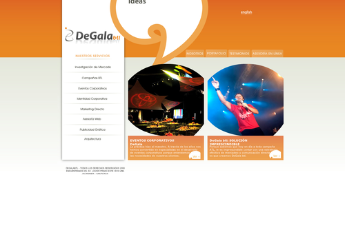 Campañas corporativas integrales, organización de eventos corporativos y sociales (fiestas de aniversario, fin de año, ferias, bodas etc), arquitectura comercial (stands, módulos etc), publicidad gráfica, asesoría y desarrollo web, marketing directo e identidad corporativa.